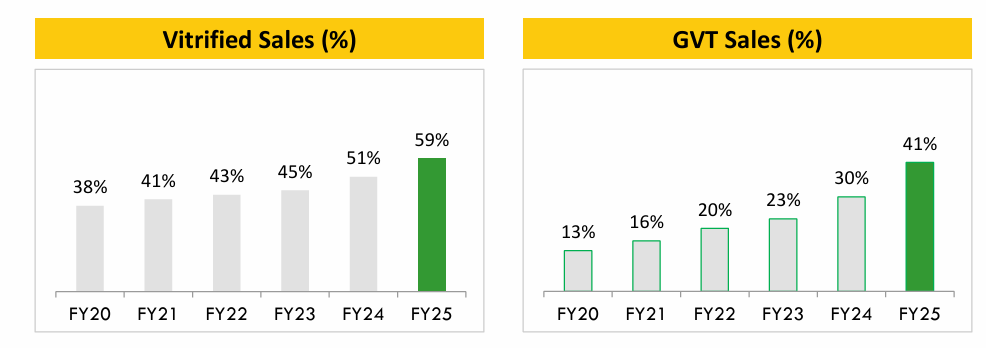 a. Changing product portfolio: higher GVT and Vitrified tiles contribution, this can be evidenced below