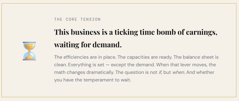 This business is a ticking time bomb of earnings waiting for demand to come- the efficiencies are in place, as evidenced by the margins, the capacities are in place- as evidenced by the 70 Cr increase in fixed assets from the last upcycle of 2022, and there’s no debt on the balance sheet.