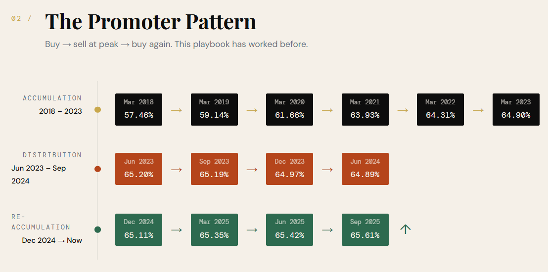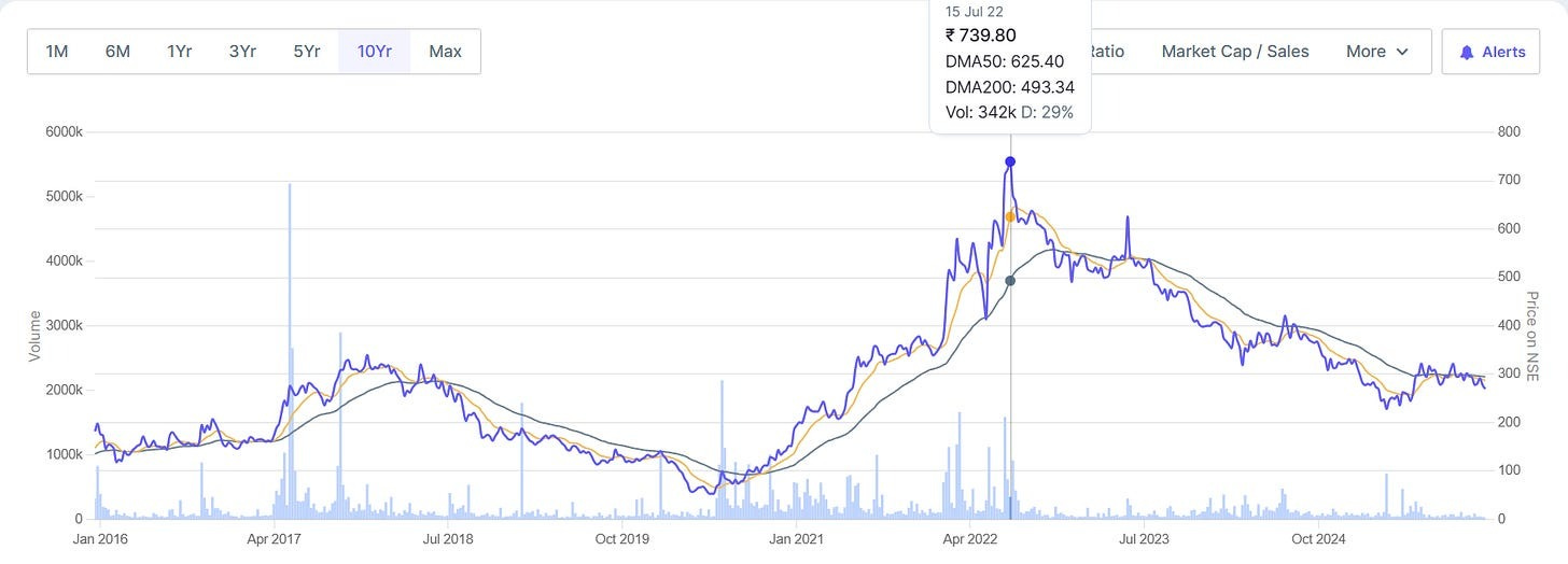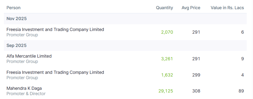 Added to this, the last time there was an upcycle, the business gave a 10X return in less than 2 years. But more interestingly the promoters were buying in the lead up to this move too, and sold after the up move.