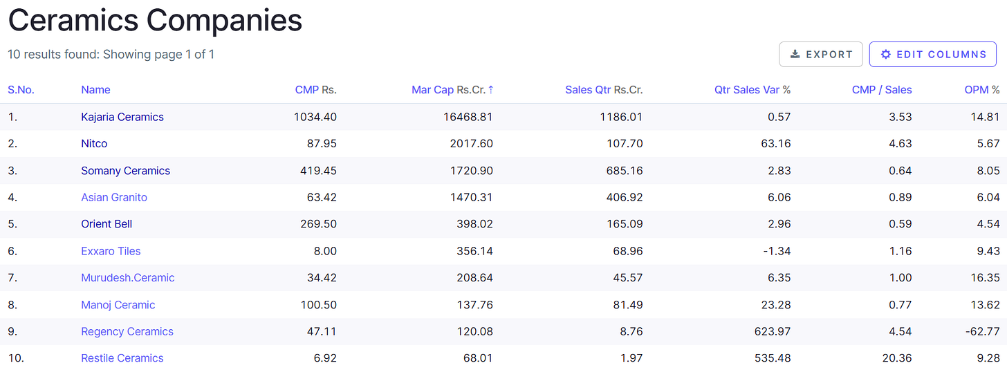 You can clearly see they have acquired large scale with the sales per quarter numbers, leaving Orient Bell far behind.
